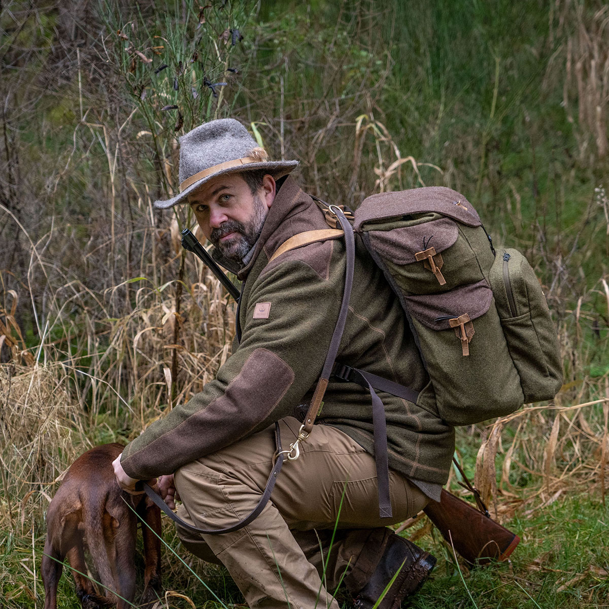 Das ist mal ein starkes Stück! Unsere 3-Jahreszeiten-Jagdhose „Rauhbein“ wird aus einem 216g/m2 starken Polycotton gefertigt, der durch eine starke (und PFC-freie) Wachs-Imprägnierung zu einem stabilen und widerstandsfähigen Hosenstoff wird und seinen Träger durch Frühjahr, Sommer, Herbst und auch die wärmeren Wintertage bringt. Der Schnitt der Hose hat die typischen aufgesetzten Fronttaschen, die doppelt gelegte und ergonomisch in Form gebrachte Kniepartie für bessere Bewegungsfreiheit sowie die innen liegende Messertasche am hinteren, rechten Hosenbein. Der ruppige Stoff macht sie nicht nur stabil und widerstandsfähig, sondern gibt der Jagdhose auch einen ganz eigenen, „raubeinigen“ Charme – daher auch der Name.