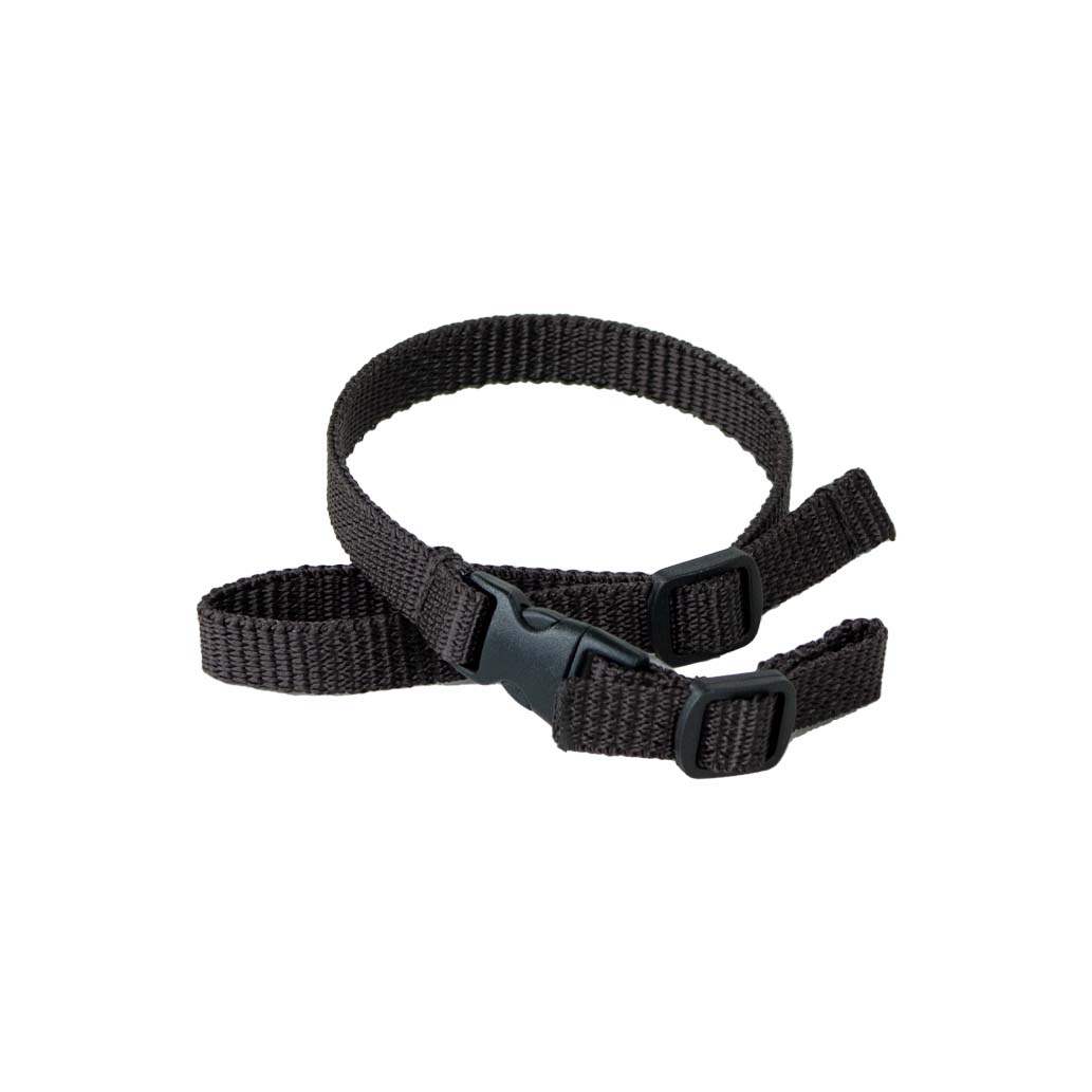 Zur Sicherung von Fernglas, Wärmebildkamera oder Nachtsichtgerät befinden sich an beiden Seiten des Trageriemens zwei D-Ringe, an die man zusätzliche, längenverstellbare Befestigungsschlaufen anbringen kann. Dieses optionale Zubehör hat am Ende einen Clip, der an der Optik befestigt werden kann. So ist das jeweilige Gerät nicht nur extra gesichert, sondern kann auch mit einem schnellen Handgriff aus seiner Sicherung gelöst werden. Dieses "Halteband für den Linsentopf" ist separat als optionales Zubehör zu erwerben.