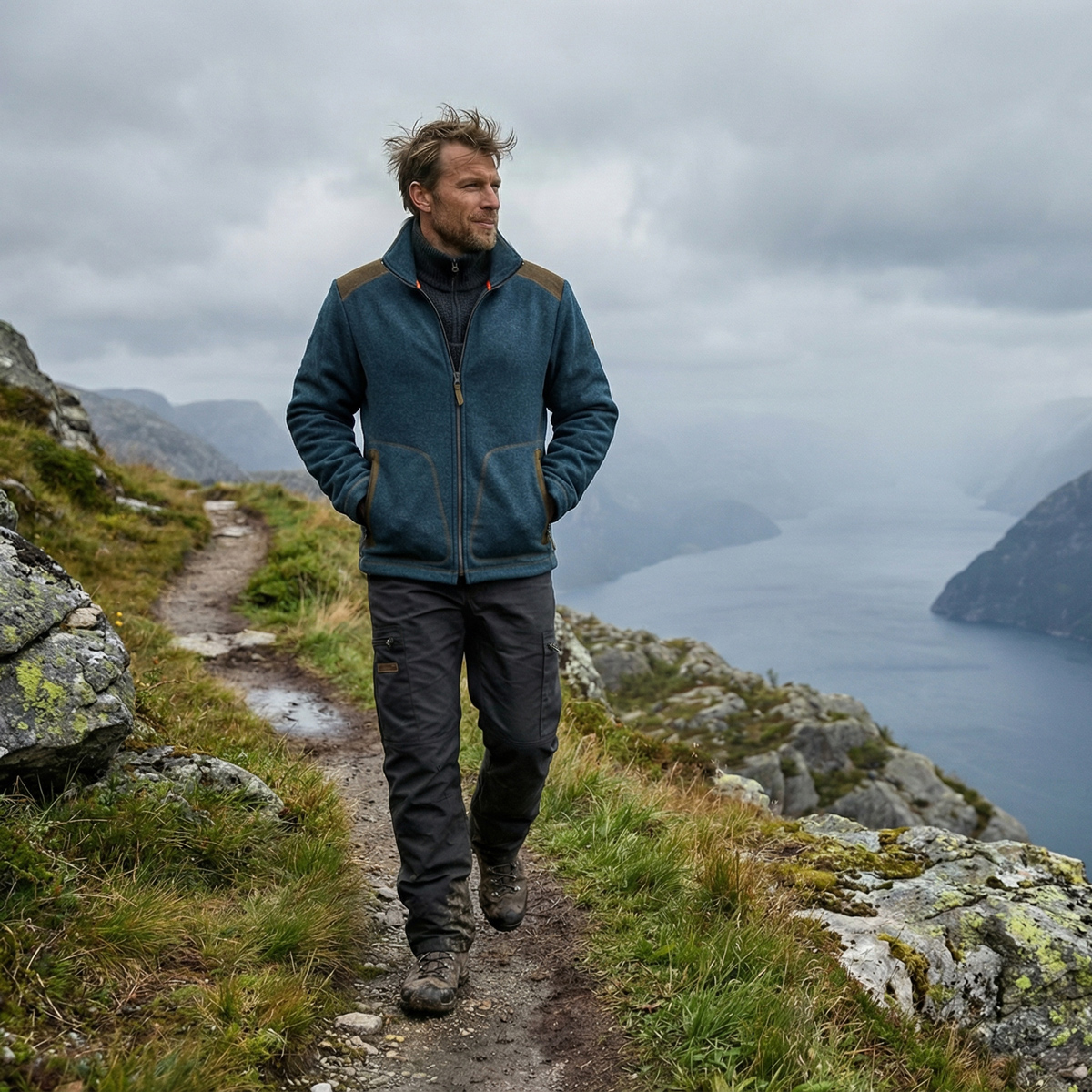 Our loden fleece jacket "Urs" is made from 100% pure virgin wool. It is breathable, insulating, and very robust. Due to the elaborate double-sided napping process of the loden fabric, the jacket is pleasantly soft and offers high wearing comfort. Loden is a natural product that requires minimal care: odors disappear in the fresh air, and dirt can be left to dry and then brushed off. But what makes our special loden fleece truly exceptional are its climate properties. The dense weave of the double-face loden and the fine pile on the surface make the jacket almost resistant to wind penetration - all without a membrane! And precisely because we don't need a membrane, the loden fleece remains highly breathable, ensuring an optimal inner climate.Modern and well-thought-out design