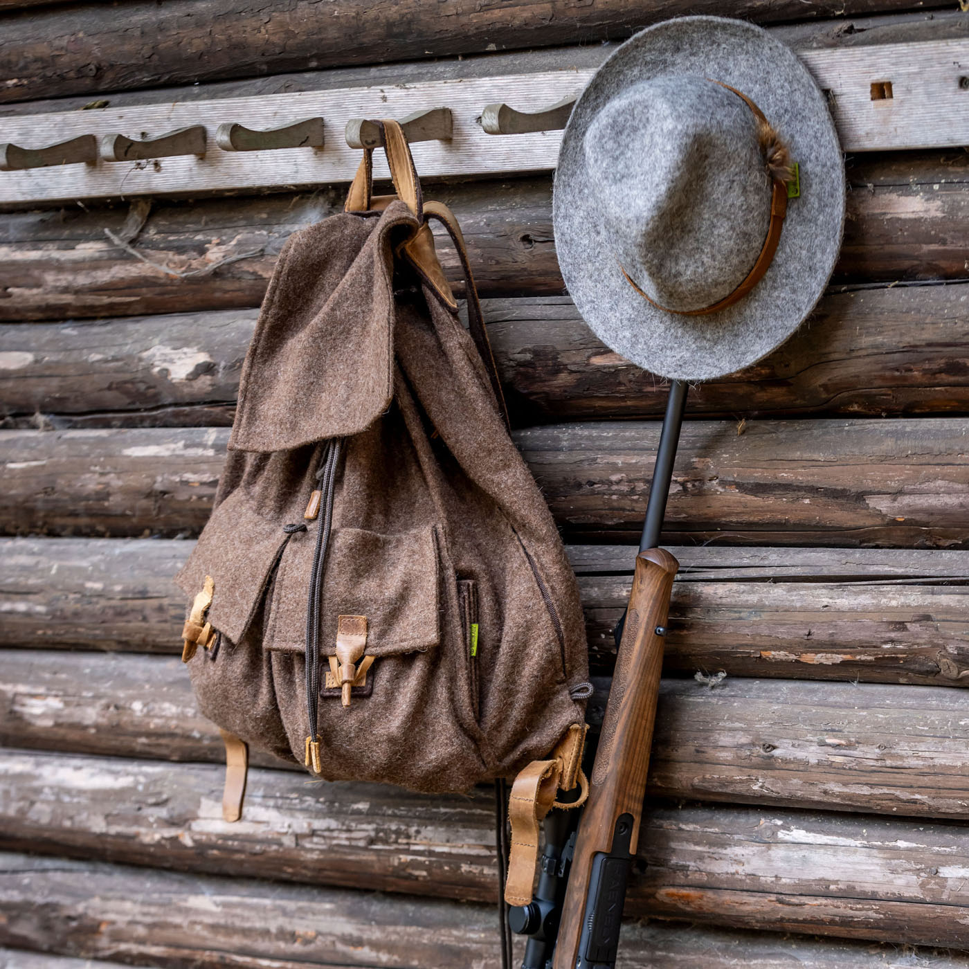 Any clattering or metallic sounds increase the risk of drawing the attention of the game, endangering the success of the hunt. The Waldkauz Cervus hunting backpack is crafted with meticulous care and attention to detail from the finest mountain loden and high-quality greased nubuck leather in our own workshop. In addition to two external pockets, it features four cotton interior pockets, two of which are open and two that can be securely closed with a zipper. One of the open pockets is designed to hold a smaller thermos or a spotting scope. The main opening of the hunting backpack can be closed with a drawstring, and the separate closure of the lid allows the Ansitzsack (seat cushion) to be securely fastened on top. Another side zipper on the main compartment provides access to the contents of the backpack, even when fully packed. The Cervus hunting backpack is completely free of any noise-causing closure parts. The drawstring of the main compartment runs through a leather guide, and the intelligently designed closures on the external pockets are also made entirely of nubuck leather. They can be easily opened, even with thick gloves, and practically produce no noise. The adjustable shoulder straps are lined with pure wool felt and adjusted to the appropriate size of the wearer using eyelets and leather straps, eliminating the need for metal buckles.Well-thought-out details