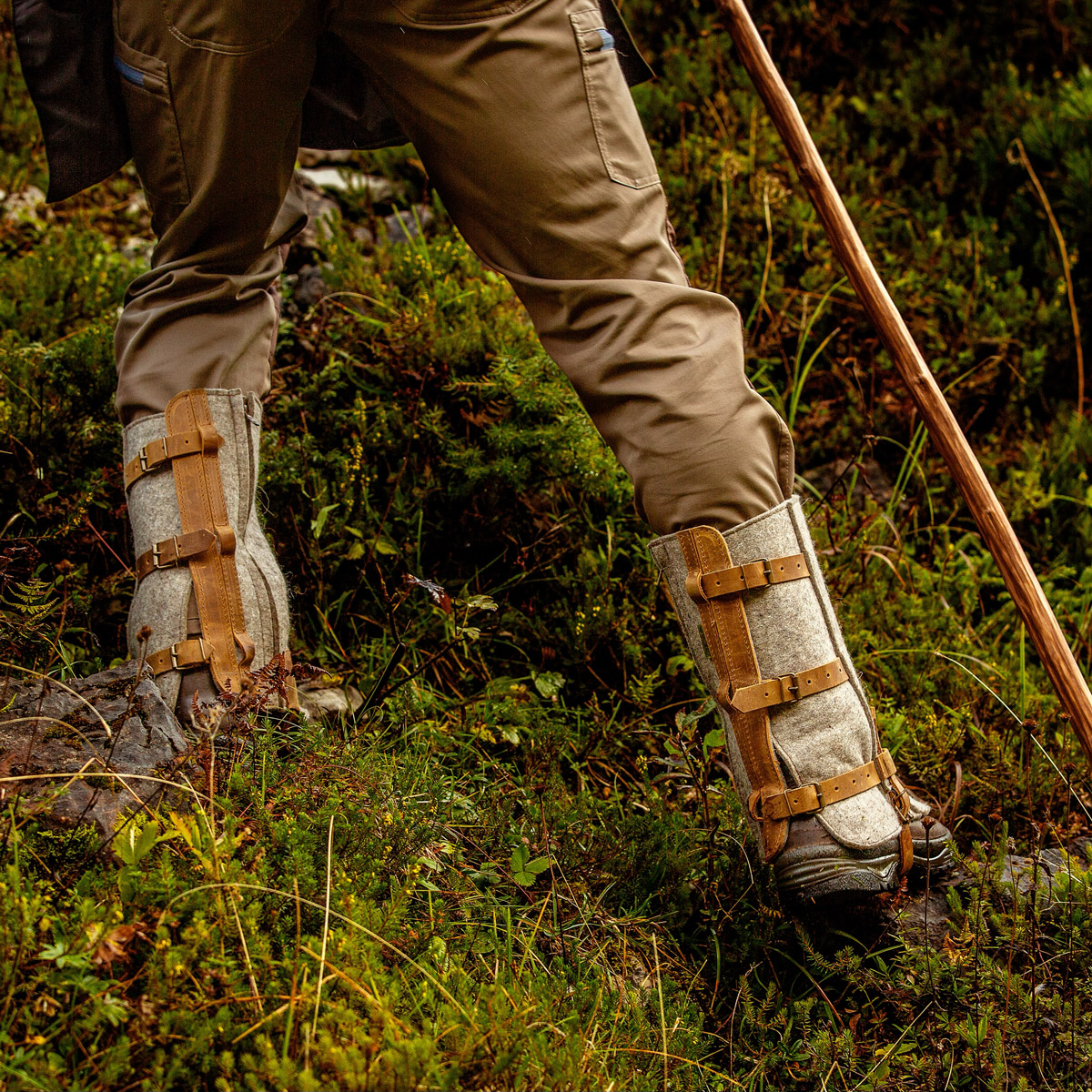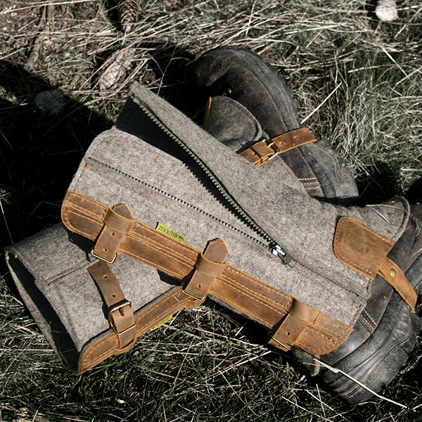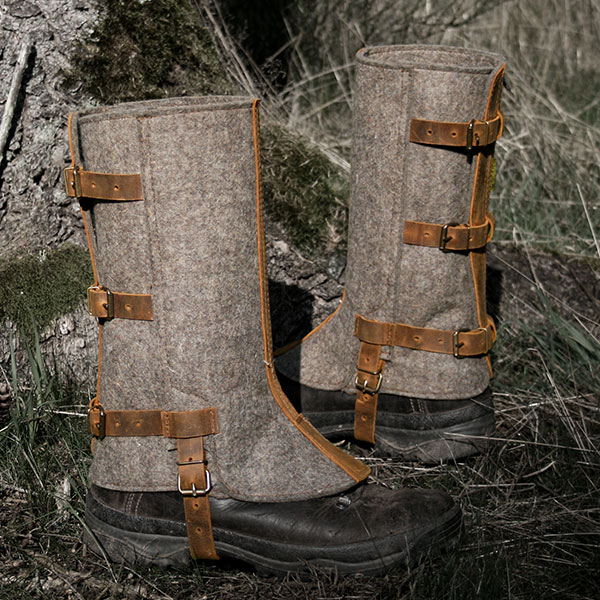 Ein 3mm dicker und widerstandsfähiger Wollfilz bildet den eigentlichen Korpus der Gamaschen. Alle stärker belasteten Stellen wie auch alle Schnallen werden aus unserem stabilen Fettleder gefertigt. So schaffen wir einen sicheren Schutz vor Dornen und anderen spitzen Hindernissen und verwenden zugleich eines der wärmsten und trotzdem atmungsaktiven Materialien, die uns in der Natur zur Verfügung stehen.Gamaschen müssen passen!